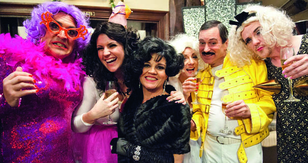 They sure know how to dress up in the Woolpack. That's Bob as Dame Edna. Yep, you read that correctly! Ashley clearly borrowed Sean from Corrie's Freddie Mercury outfit.