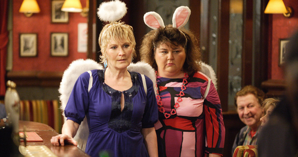 Saucy devil is the go-to look for a Rovers Return Halloween party, it seems. Karen McDonald, he's behind you! Oh, that's panto. Never mind.
